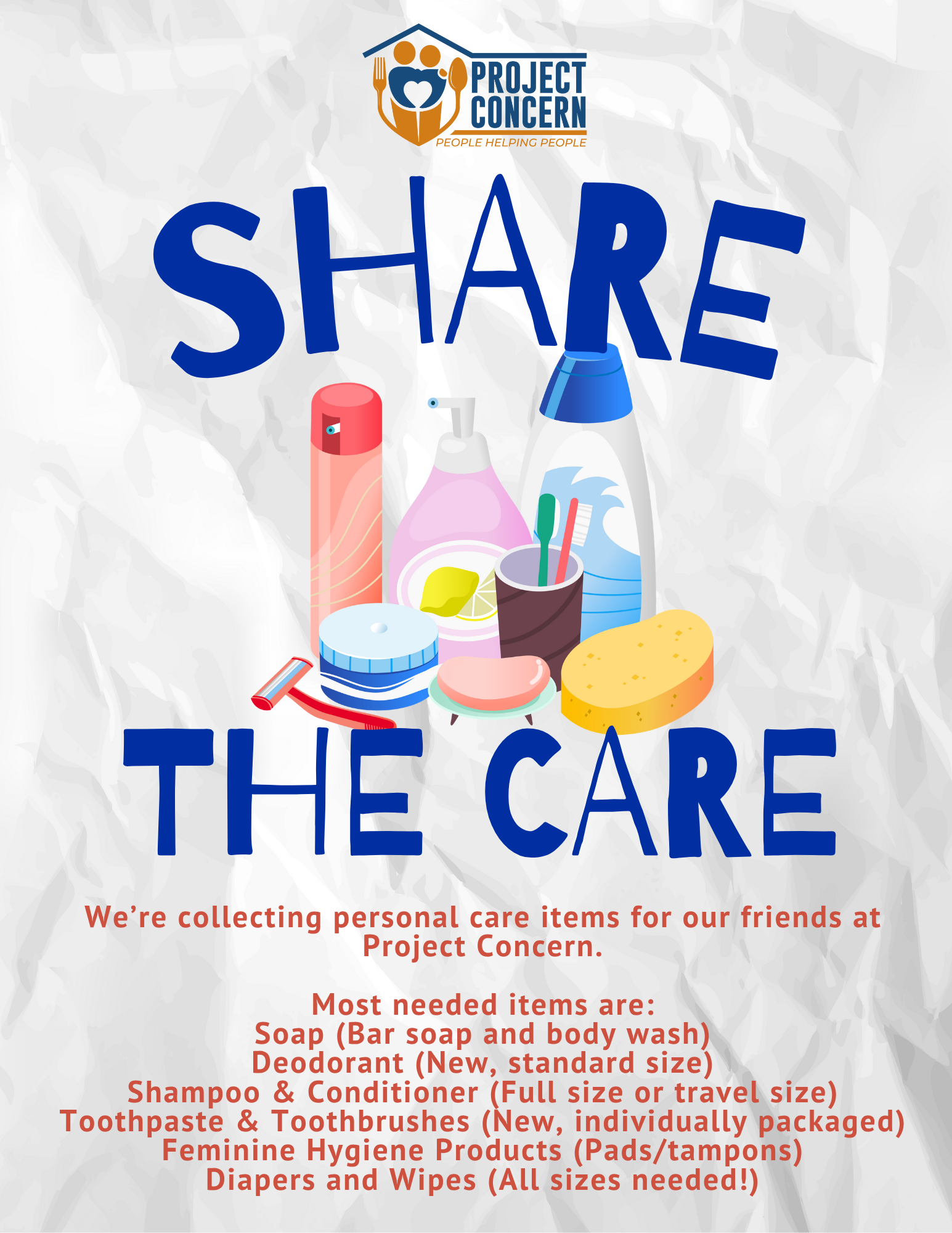 Below you’ll find links for instructions on how to host a drive as well as PDFs and graphics for social media for various types of drives. To have your flyer personalized with your dates/logo, please email Missie at missie.beaber@projectconcerncudahy.org.